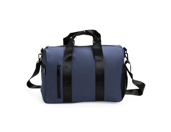 Descrição: Bolsa confeccionada em couro sintético impermeável com fechamento em zíper e capacidade máxima de 20 litros. Apresenta compartimento interno revestido em nylon e bolso dedicado a objetos menores. Possui dois compartimentos externos em tamanhos diferentes, bolso em tela de nylon e três alças: duas de mão e uma transversal removível.