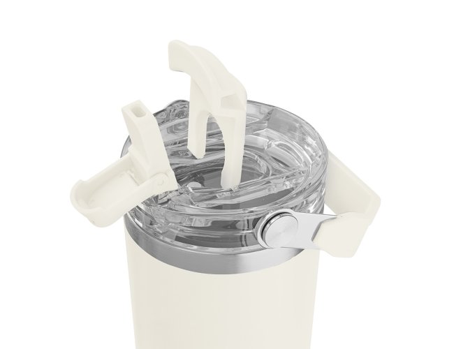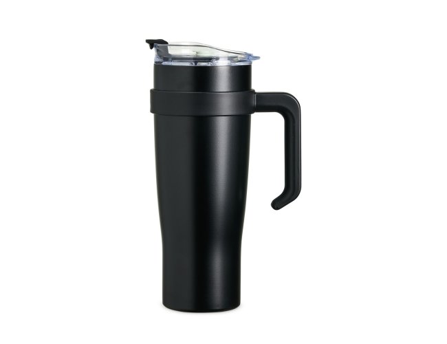 Garrafa térmica em aço inox com parede dupla isolada a vácuo, com capacidade de 850ml e conta com uma pintura a pó. Tampa rosqueável com e anel de silicone para vedação. Alça de transporte em plástico. Permite-se hidratar por canudo ou bico.