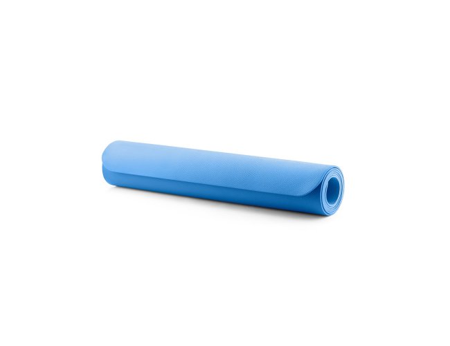 Tapete de exercício para yoga ou pilates em EVA com espessura até 4 mm. Inclusa bolsa em poliéster com rede para não conservar odores e alça ajustável em tecido para transporte. Fechado: Ø115 x 635 mm | Aberto: 1830 x 610 x 4 mm